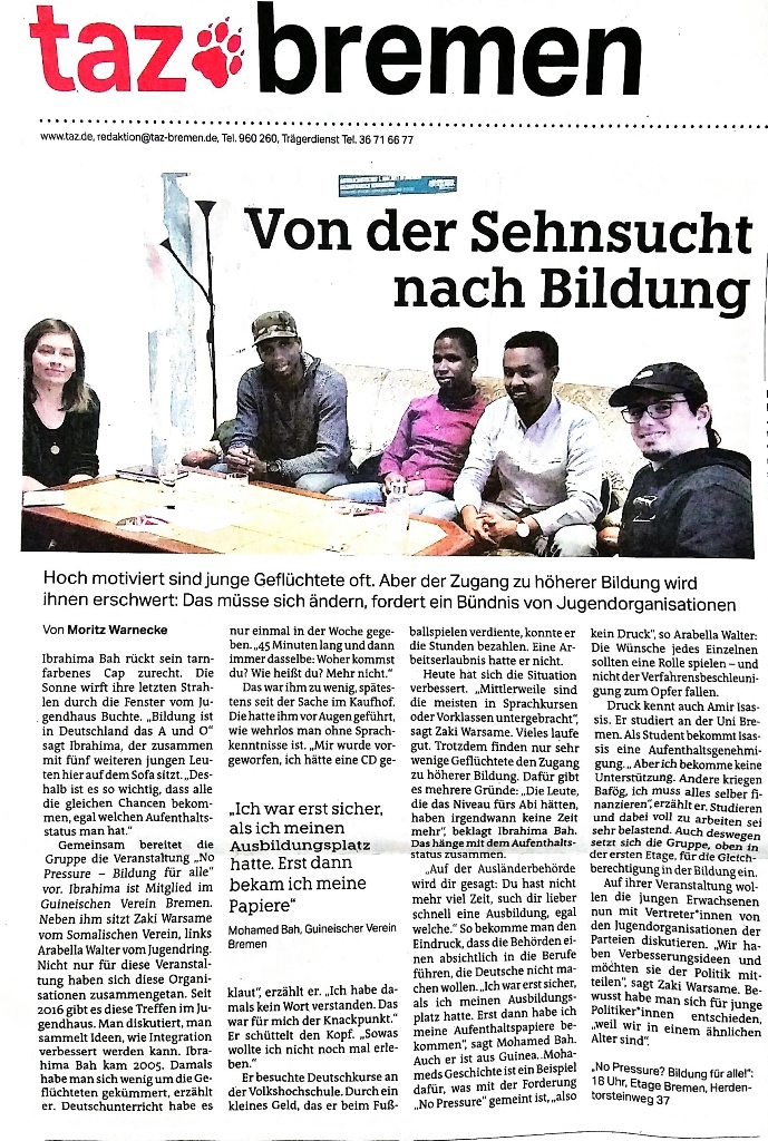 „Was können wir für die Chancen junger Studenten und Geflüchteter in Bremen tun? – Der Guineische Verein für Bildung und Integration im Gespräch mit Politik und Medien“
